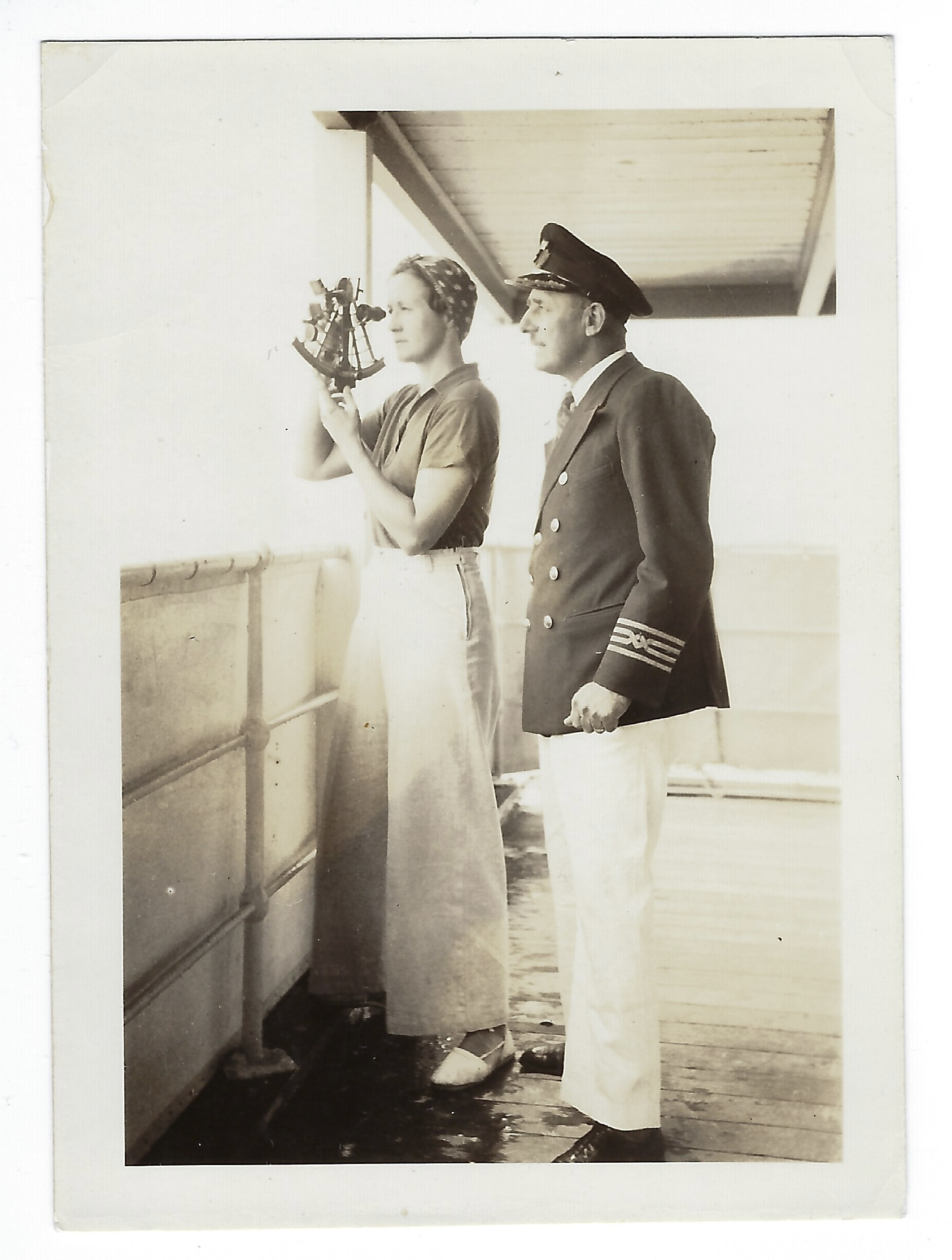Helen Skinner, aboard the M.V. Silverwillow, in the South Atlantic heading to South Africa, 1937